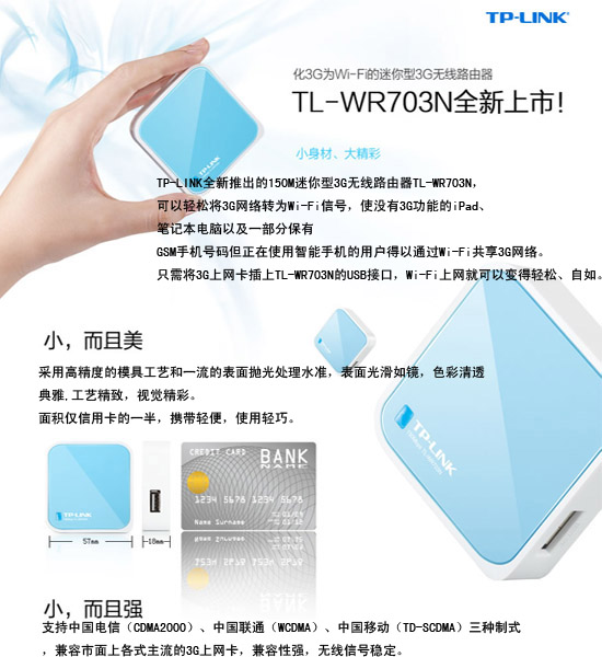 迷你型3G無線路由器TL-WR703N