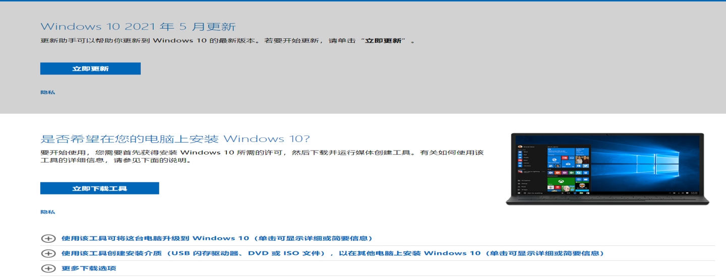 要開始使用,你需要首先獲得安裝 Windows 10 所需的許可,然后下載并運(yùn)行 MediaCreationTool 媒體創(chuàng)建工具。(需要注意:微軟會(huì)驗(yàn)證兼容性,如顯示無法安裝,不可強(qiáng)制升級(jí))